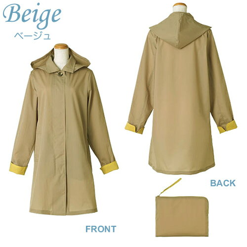 仕様 素材:ポリエステル100% サイズ:フリーサイズ 肩幅:38cm 胸囲:104cm 袖丈:65cm 着丈:89cm 専用収納ポーチ(収納時サイズ):約W27×D21×H3cm カラー:ベージュ、ネイビー 生産国:ミャンマー attention ご使用後は、陰干しにして自然乾燥させてください。