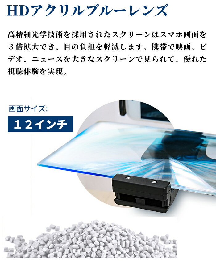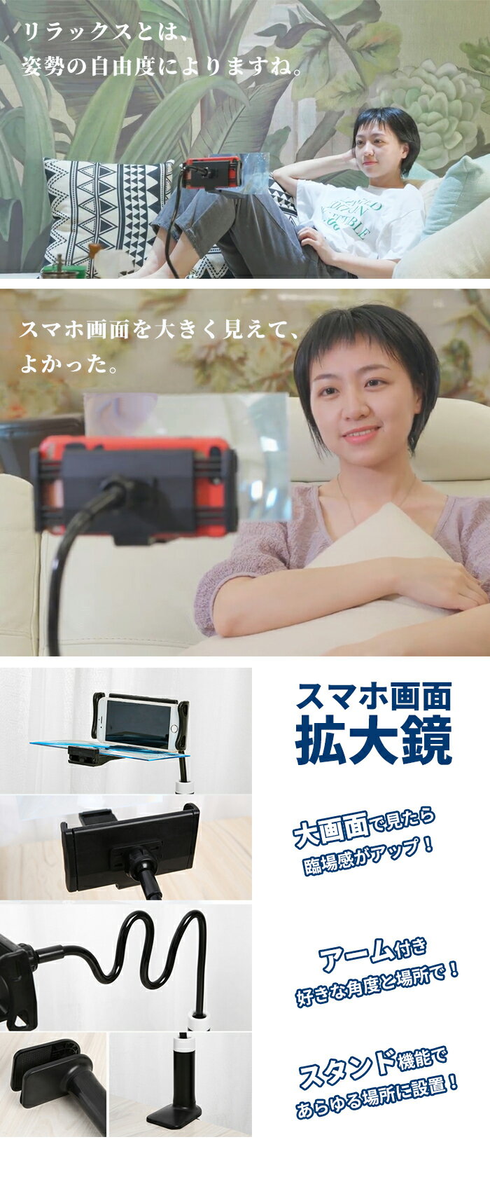 スクリーンアンプ スマホ 画面拡大鏡 12インチ 360°自由回転 スタンド アーム 寝ながら クリップ式 携帯電話 画面拡大ルーペ 動画鑑賞 電話スタンド 折りたたみ式 携帯便利 軽量 目の保護 疲労軽減 ルーペ HD スマホホルダー 360度回転 フレキシブルアーム