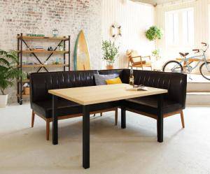 ダイニングテーブルセット 6人用 コーナーソファー L字 l型 ベンチ 椅子 おしゃれ 安い 食卓 レザー 合皮 カウチ 4点 ( 机+ソファ1+左肘ソファ1+長椅子1 ) 幅150 西海岸 ヴィンテージ インダストリアル レトロ ミッドセンチュリー 高さ65 ロータイプ 低め 古材風 大きい
