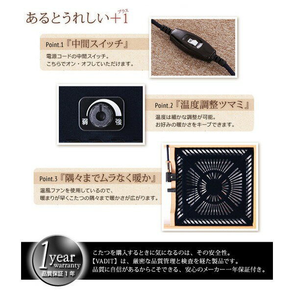 point.3『隅々までムラなく暖か』温風ファンを使用しているので、温まりが早くこたつの隅々まで暖かさが広がります。